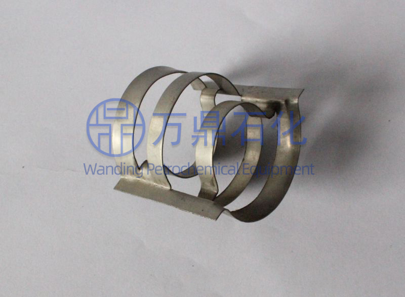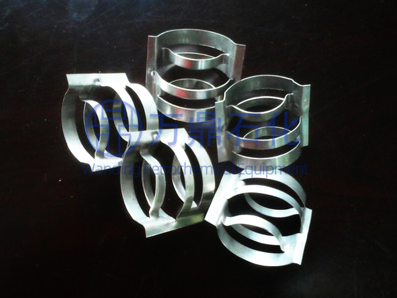共軛環結合了環形和鞍形填料的優點,采用共軛曲線肋片結構,兩端外卷邊及合適的長徑比,填料間或填料與塔壁間均為點接觸,不會產生疊套??紫毒鶆?,阻力小,亂堆時取定向排列,故有規整填料和特點。有較好的流體力學和傳質性能??捎盟芰?、金屬和陶瓷做成。