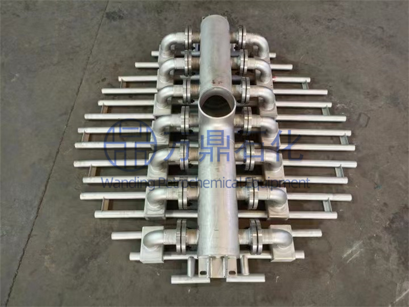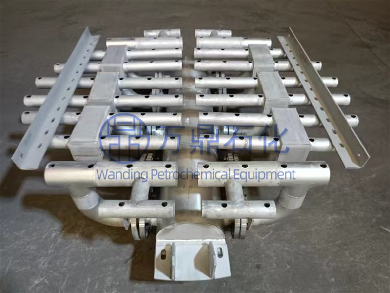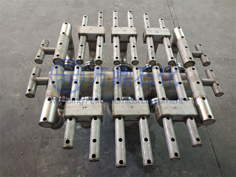 排管式液體分布器適用于直徑250mm以上的塔。對于直徑4m以上的大塔或液體流量較大的塔,可采用雙液位管進(jìn)料。對于直徑小于250mm的小塔,可制成十字頭形液體分布器。