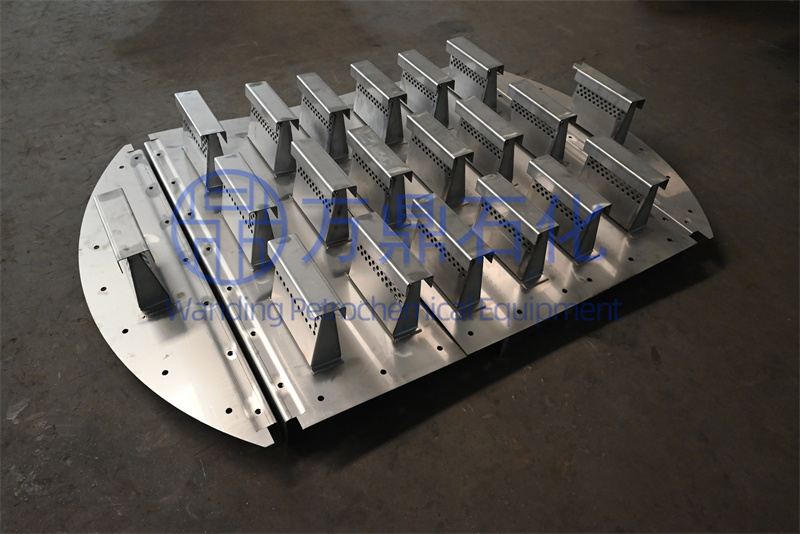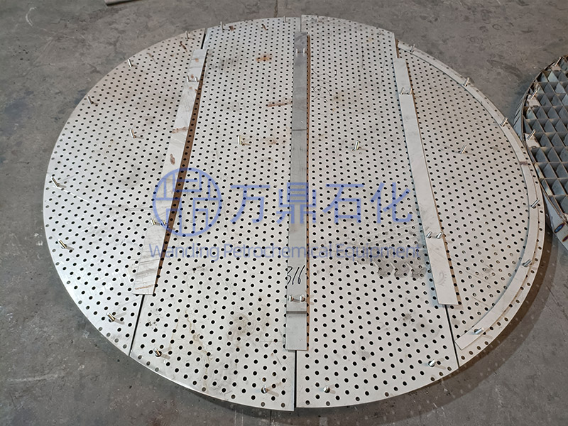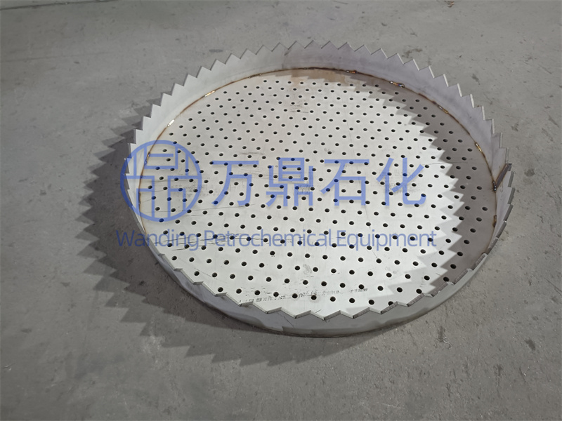 操作過程中,氣相高速吹過塔板,將液相吹散成細(xì)小的液滴。氣相作為連續(xù)相,液相作為分散相。網(wǎng)孔塔板上還裝有傾斜的擋沫板,它采用與塔板結(jié)構(gòu)相同的網(wǎng)孔板,但斜孔的開口寬度為6~8 mm。擋沫板與水平方向成10~60°,其上開孔與塔板上的斜孔方向成90°,可將噴射的液滴擋下來,從而**降低了塔板的霧沫夾帶。同時,擋沫板本身也是一個**的傳質(zhì)元件,這樣充分利用了塔板的空間。
